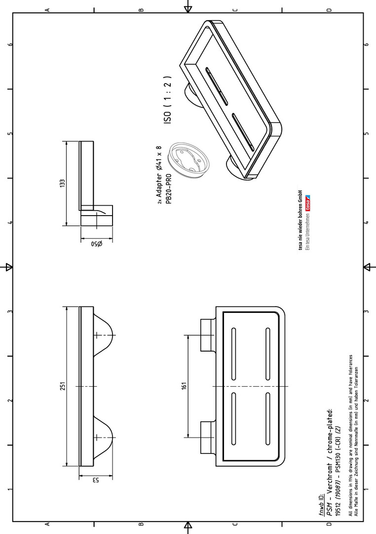 nie wieder bohren Duschablagekorb Plan Smart 130 chrom 251 x 53 x 133 mm, Zinkdruckguss, hochglanzverchromt, Wandplatte hochglanzverchromt