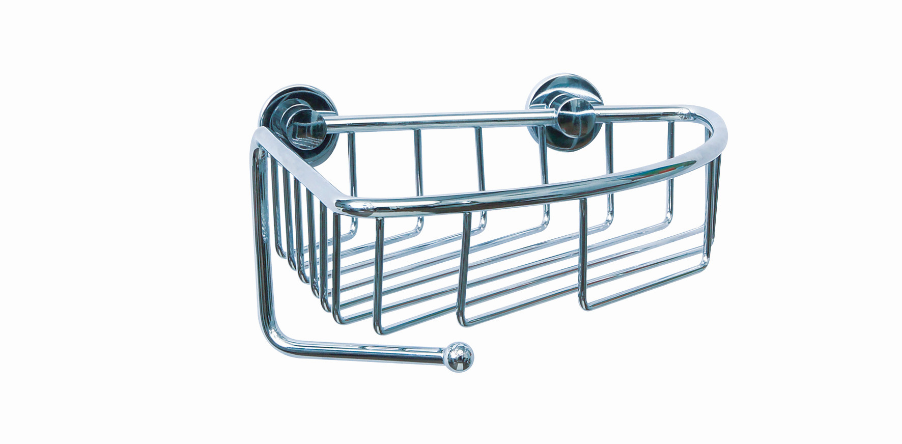 nie wieder bohren Eck-Ablagekorb PRO DK110 205 x 123 x 213 mm, einstöckig, Messing, hochglanzverchromt