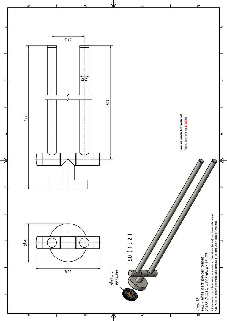 nie wieder bohren Handtuchhalter PRO 020 WHITE 50 x 84 x 456 mm, zweiarmig, Zinkdruckguss, Messing, weiß, matt
