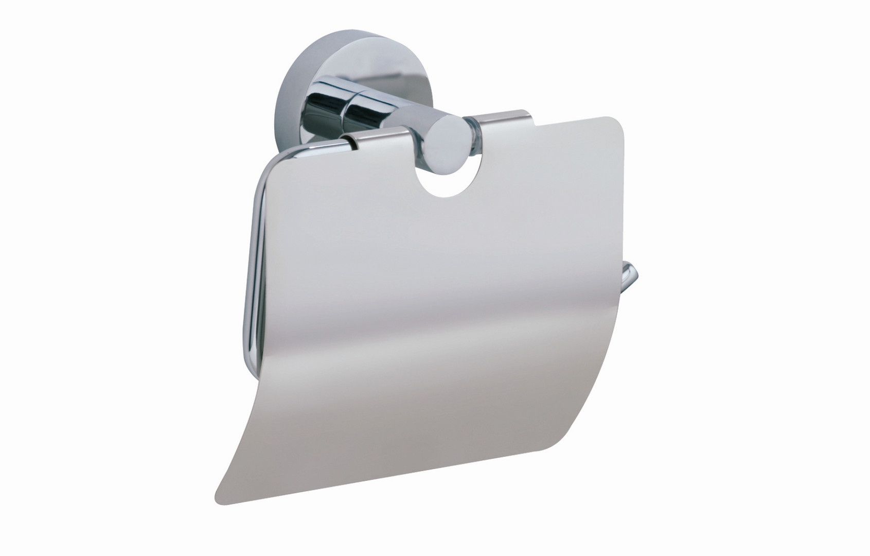 nie wieder bohren Papierrollenhalter PRO 090 150 x 132 x 64 mm, Messing hochglanzverchromt, mit Deckel