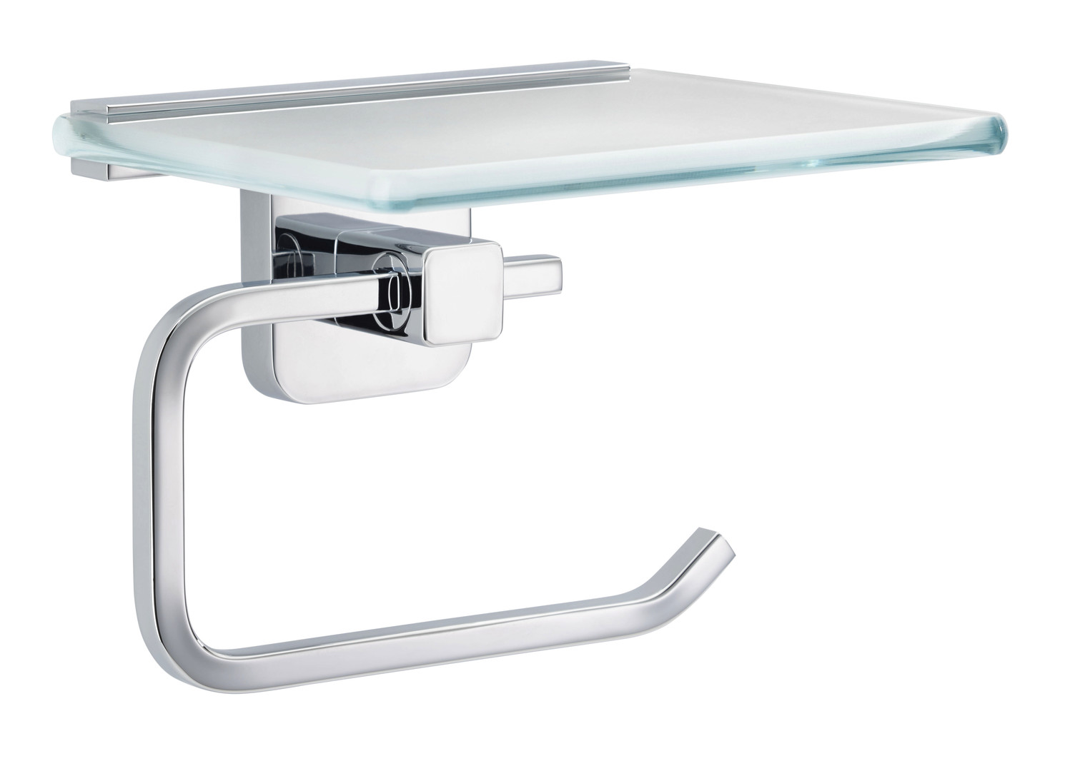 nie wieder bohren Papierrollenhalter PRO EDGE 128 x 116 x 148 mm, Zinkdruckguss, Edelstahl, hochglanzverchromt, mit Glasablage