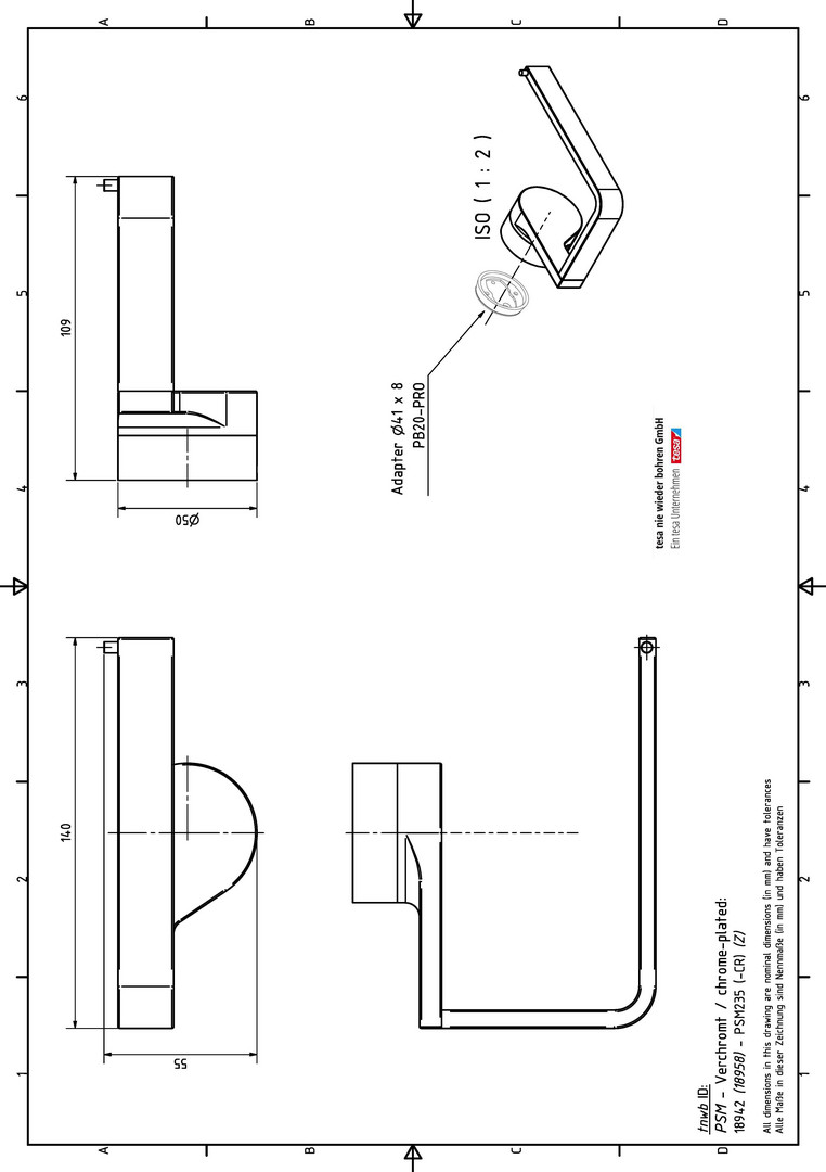 nie wieder bohren Papierrollenhalter Plan Smart chrom 140 x 55 x 109 mm, Zinkdruckguss, hochglanzverchromt, ohne Deckel, Rosette chrom