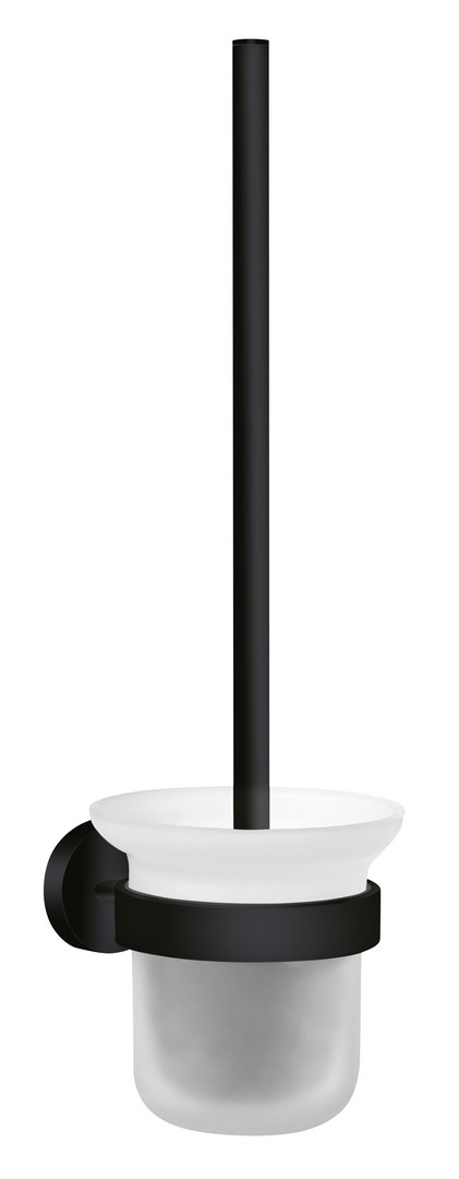 nie wieder bohren Toilettenbürstengarnitur PRO 020-V2-BLACK 112 x 379 x 145 mm, Zinkdruckguss, schwarz, matt, Glas satiniert, Bürstenkopf TPE anthrazit