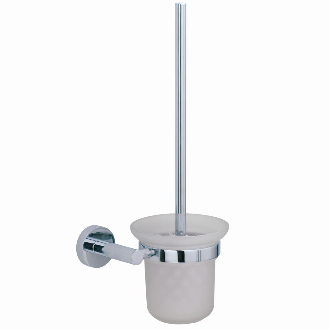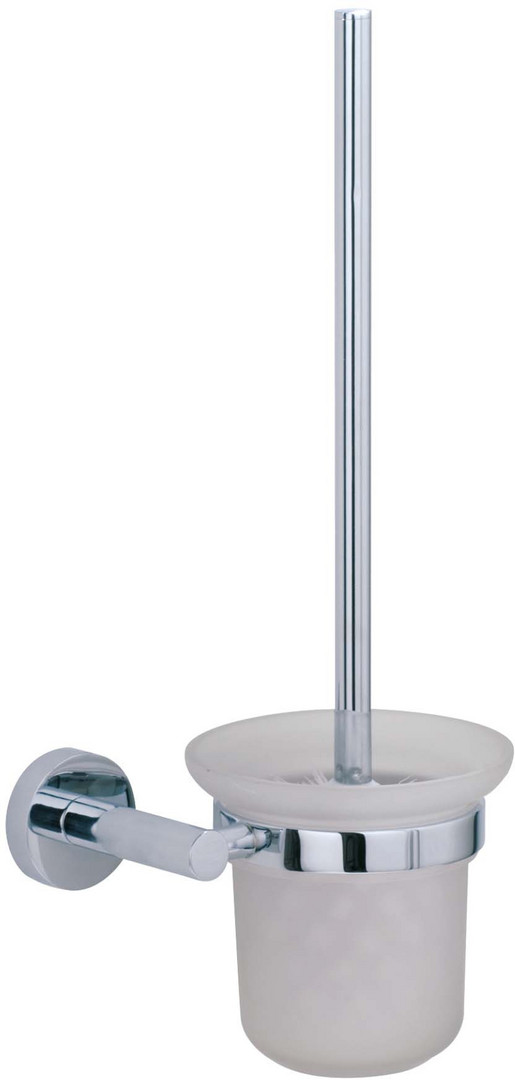 Ø Bürstenkopf 70mm, Ø Glasöffnung 112 mm, Bürstenkopf Kunststoff (weiß), Halterung Messing hochglanzverchromt, Stange Edelstahl hochglanzverchromt, auf Anfrage auch mit Kunststoffbehälter erhältlich (Design abweichend), mit Befestigungstechnik