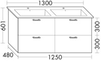 FORMAT Design Waschtisch-Unterschrank WVMM125, 1250 x 480 x 601 mm, 2 Schubladen/2 Auszüge
