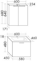 FORMAT Basic Waschtisch-Kombination, 600 mm, mit Spiegelschrank, 1 Auszug