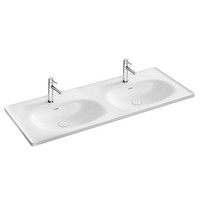 VitrA Bad Doppel-Möbelwaschtisch Equal, 130 x 52 cm, 1 Hahnloch je Becken mittig und Überlaufschlitz