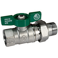 Giacomini Trinkwasser-Kugelhahn R259W, Messing vernickelt, Durchgang, Flügelgriff grün