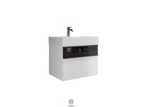 Burgbad Mineralguss Waschtisch-Unterschrank Set Yumo, 66,5 x 61 x 47 cm, 1 Schublade/Auszug, Waschtisch weiß
