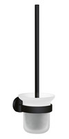 nie wieder bohren Toilettenbürstengarnitur PRO 020-V2-BLACK, Zinkdruckguss, schwarz, matt, Glas satiniert, Bürstenkopf TPE anthrazit