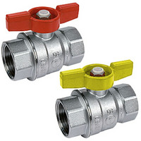 Giacomini Kugelhahn R851, Messing verchromt, Durchgangsform, Flügelgriff rot