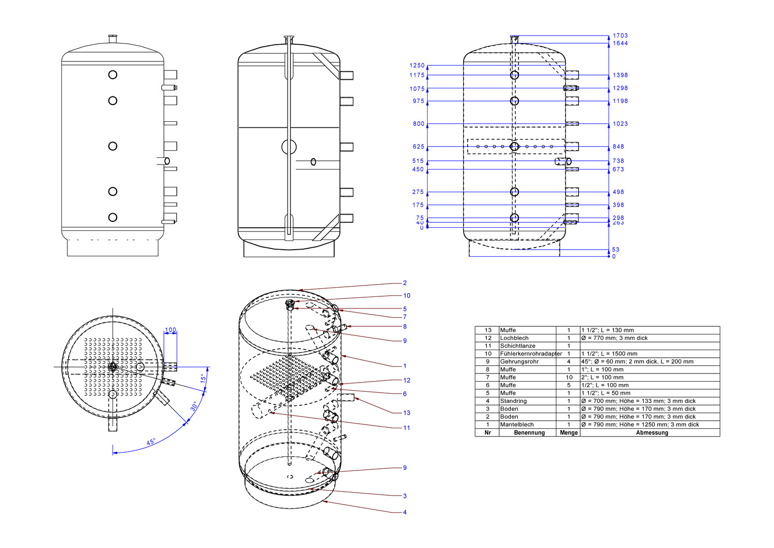 strawa Friwara Energiespeicher ES-750 718 Liter, ohne Wärmetauscher, BH 1703 mm