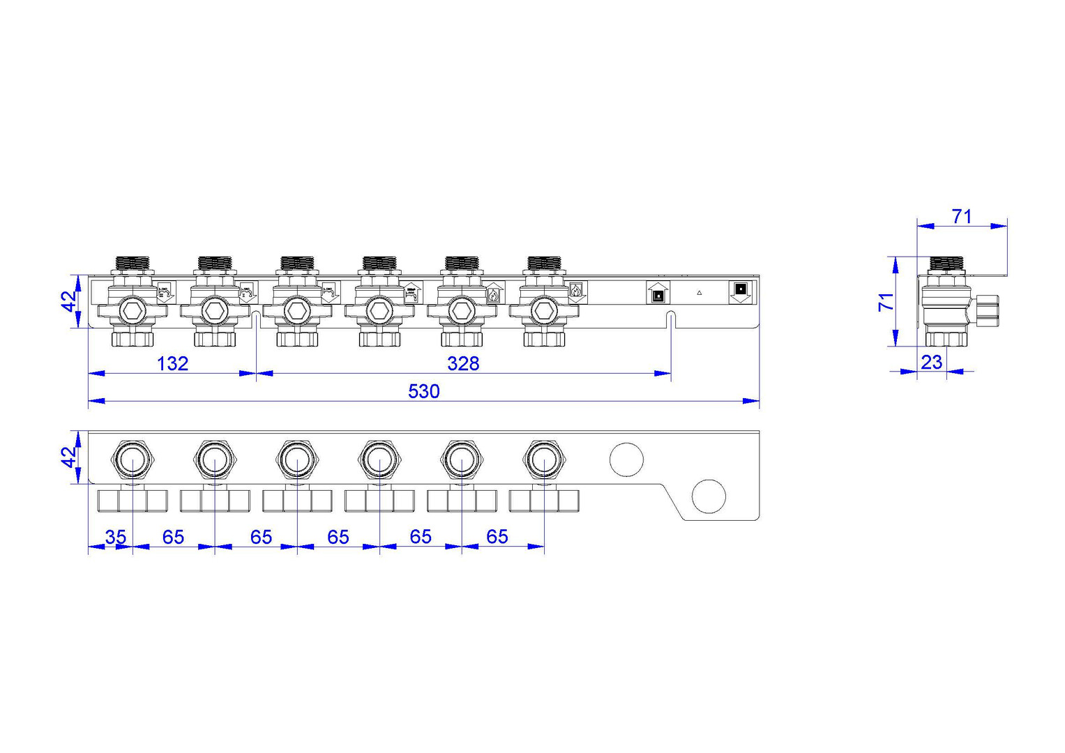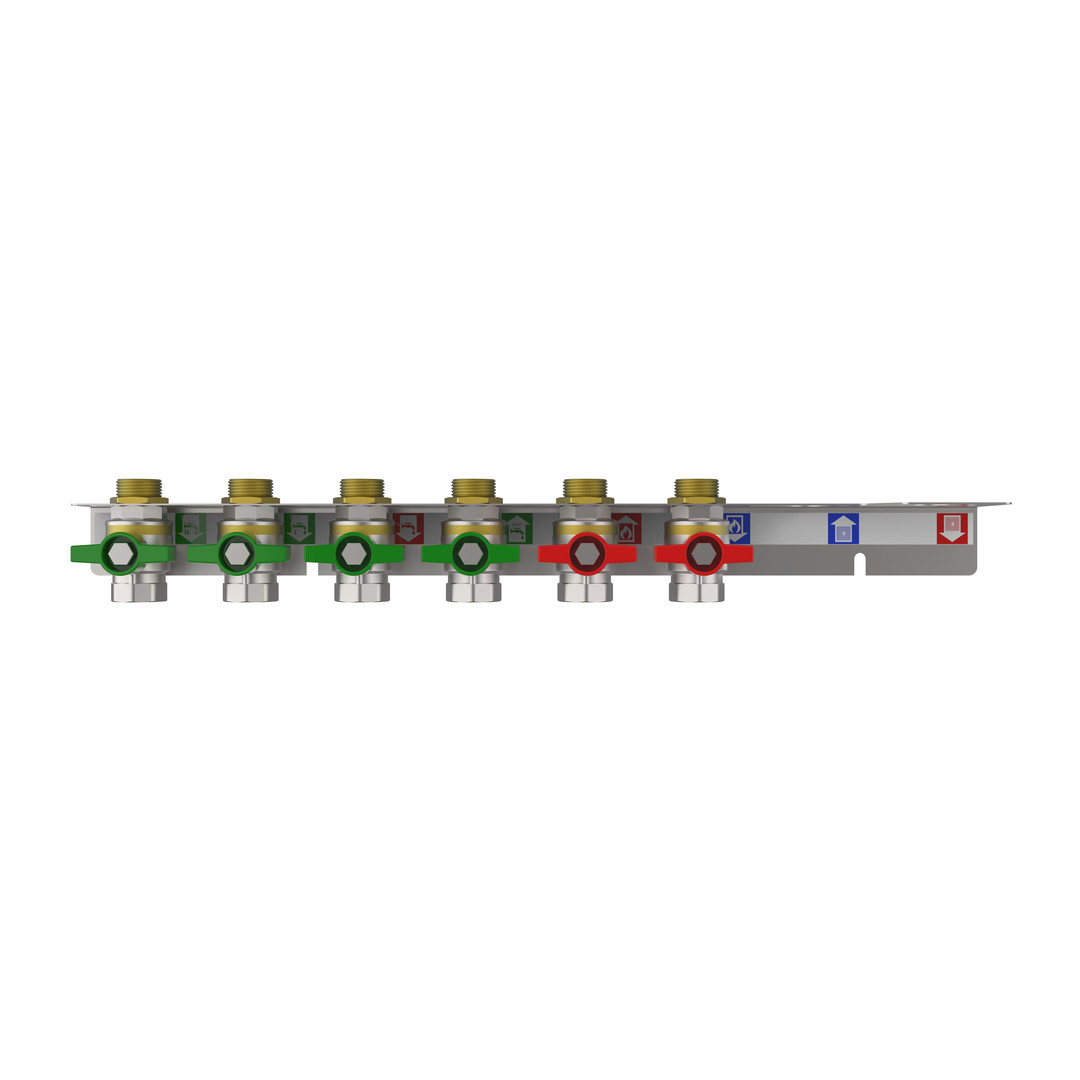 strawa Friwara WM-AS08-1-KH6-ZB-TWK Anschlussschiene für Hydraulikmodul TWE-HY-(BY), TWE-FB-HY-(BY), mit Zweitbadanschluss Trinkwasser kalt, 4x Trinkwasser und 2x Heizung BxHxT: 530 x 71 x 71 mm