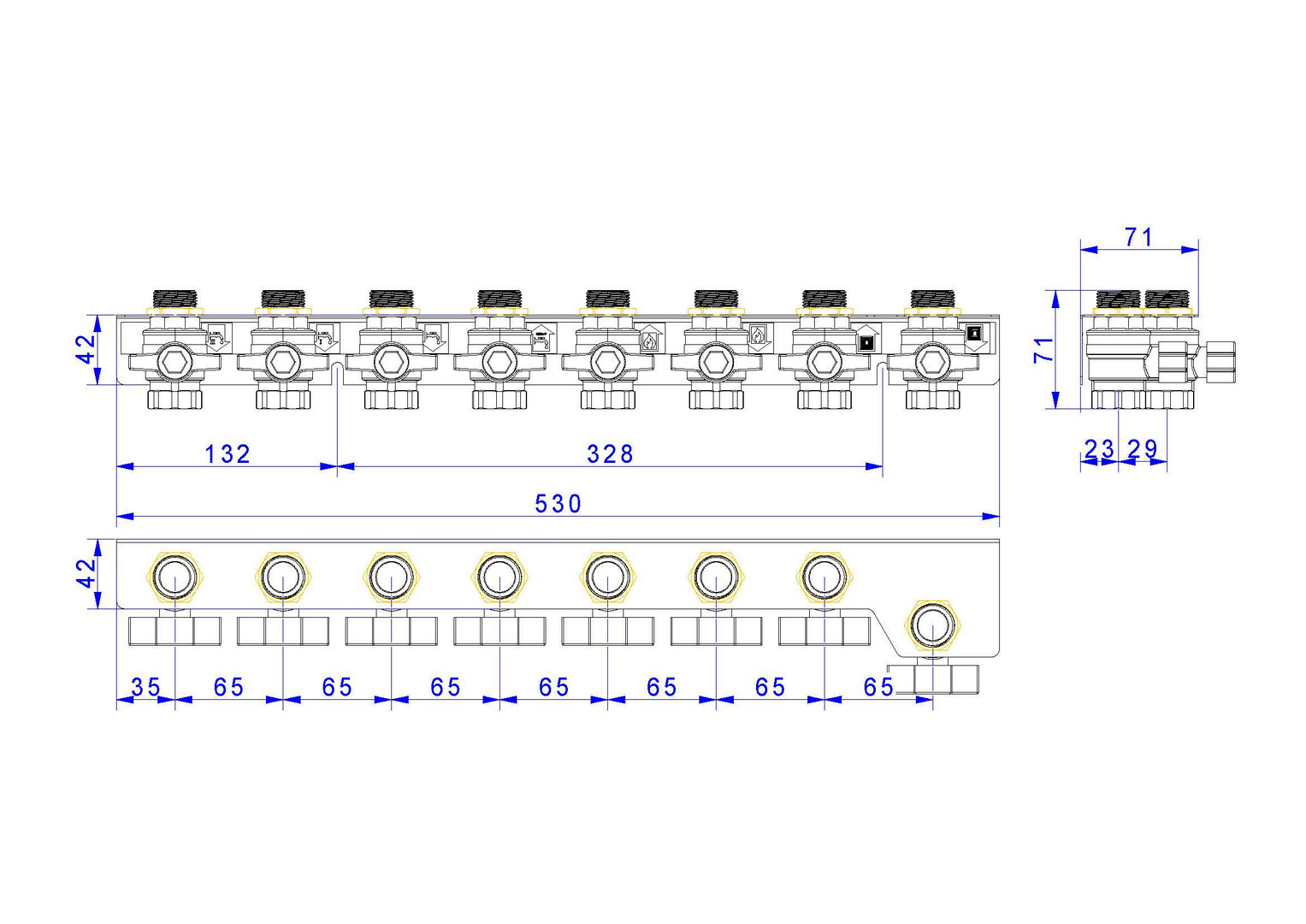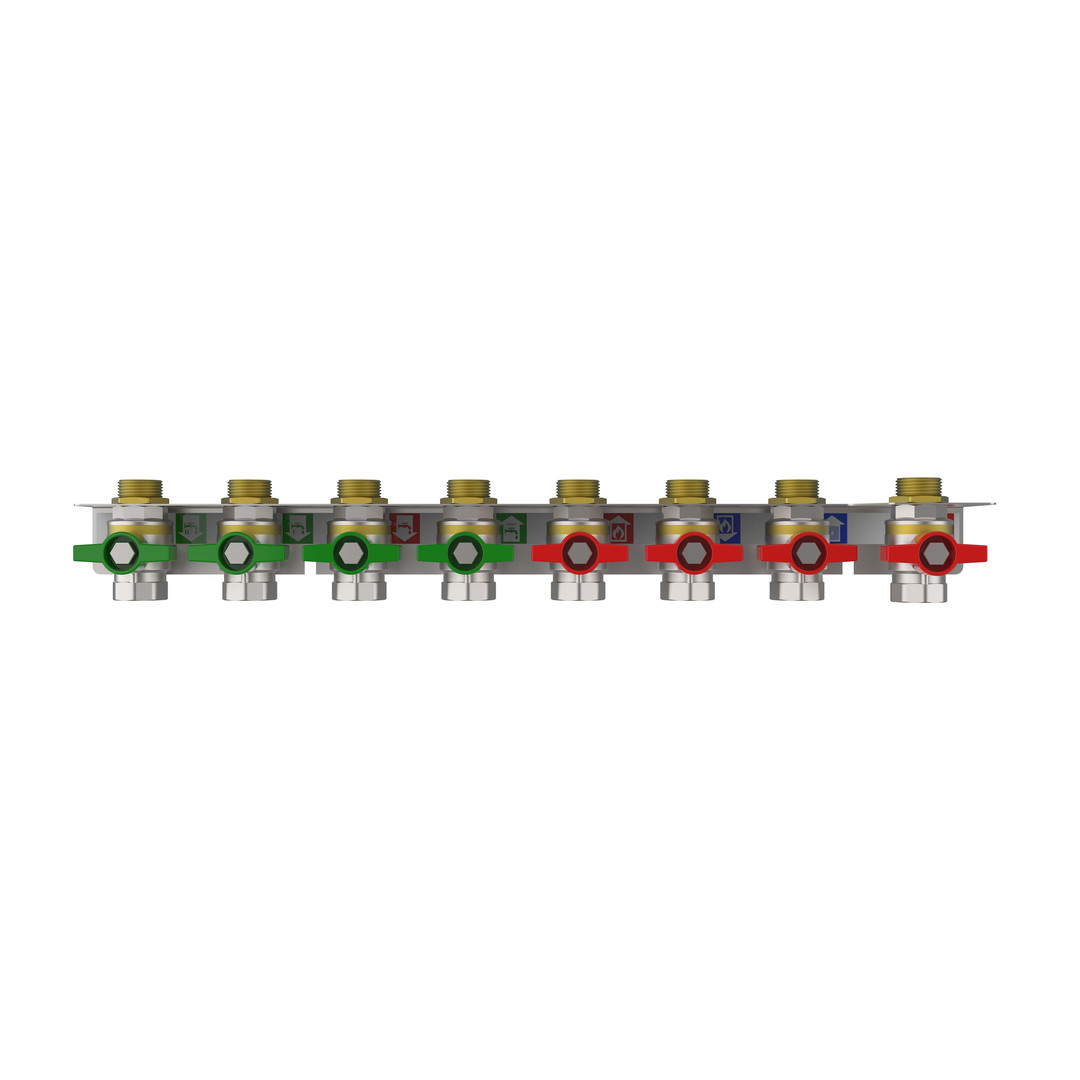 strawa Friwara WM-AS08-1-KH8-ZB-TWK-VKH Anschlussschiene für Hydraulikmodul TWE-HT-HY-(BY), TWE-FB-HY-(BY), mit Zweitbadanschluss Trinkwasser kalt, mit Kugelhahnset für externen Verteiler, 4x Trinkwasser und 4x Heizung BxHxT: 530 x 71 x 93 mm