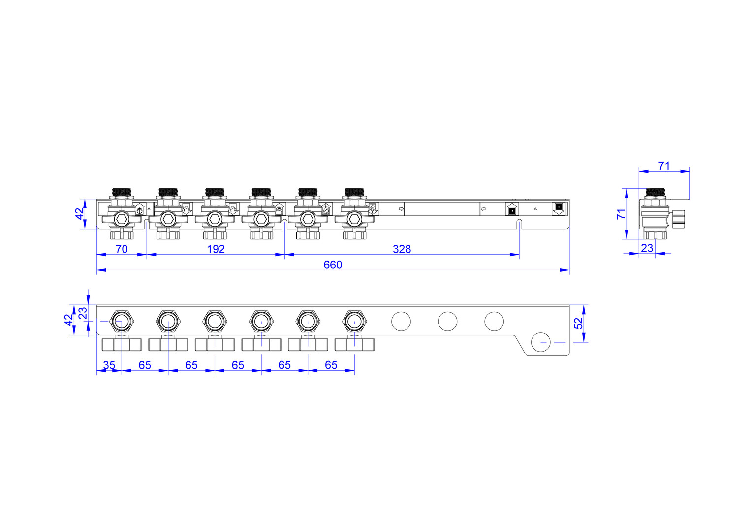 strawa Friwara WM-AS10-1-KH6-Z Anschlussschiene für Hydraulikmodul TWE-Z und TWE-FBR-Z, 4x Trinkwasser und 2x Heizung BxHxT: 660 x 71 x 71 mm
