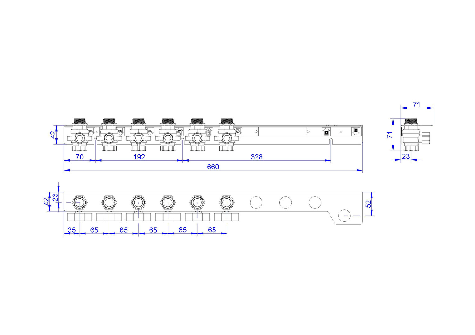 strawa Friwara WM-AS10-1-KH6-ZB-TWK Anschlussschiene für Hydraulikmodul TWE und TWE-FBR mit Zweitbadanschluss Trinkwasser kalt, 4x Trinkwasser und 2x Heizung BxHxT: 660 x 71 x 71 mm