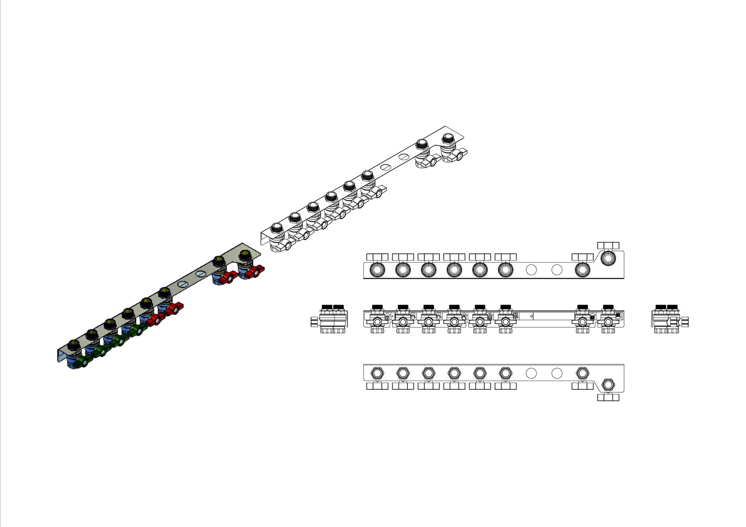 strawa Friwara WM-AS10-1-KH8-Z-VKH Anschlussschiene für Hydraulikmodul TWE-FBR-Z, mit Kugelhahnset für externen Verteiler, 4x Trinkwasser und 4x Heizung BxHxT: 660 x 71 x 93 mm