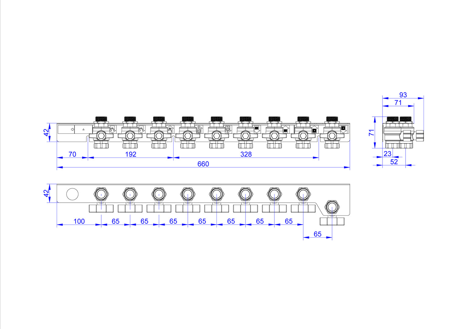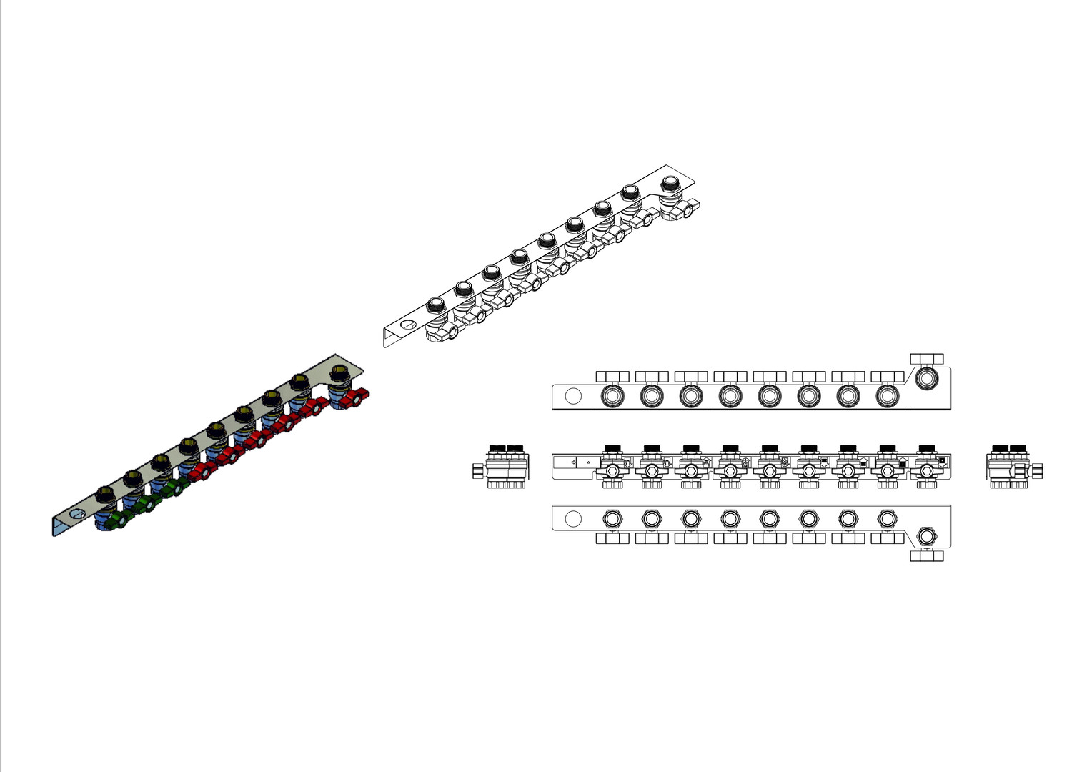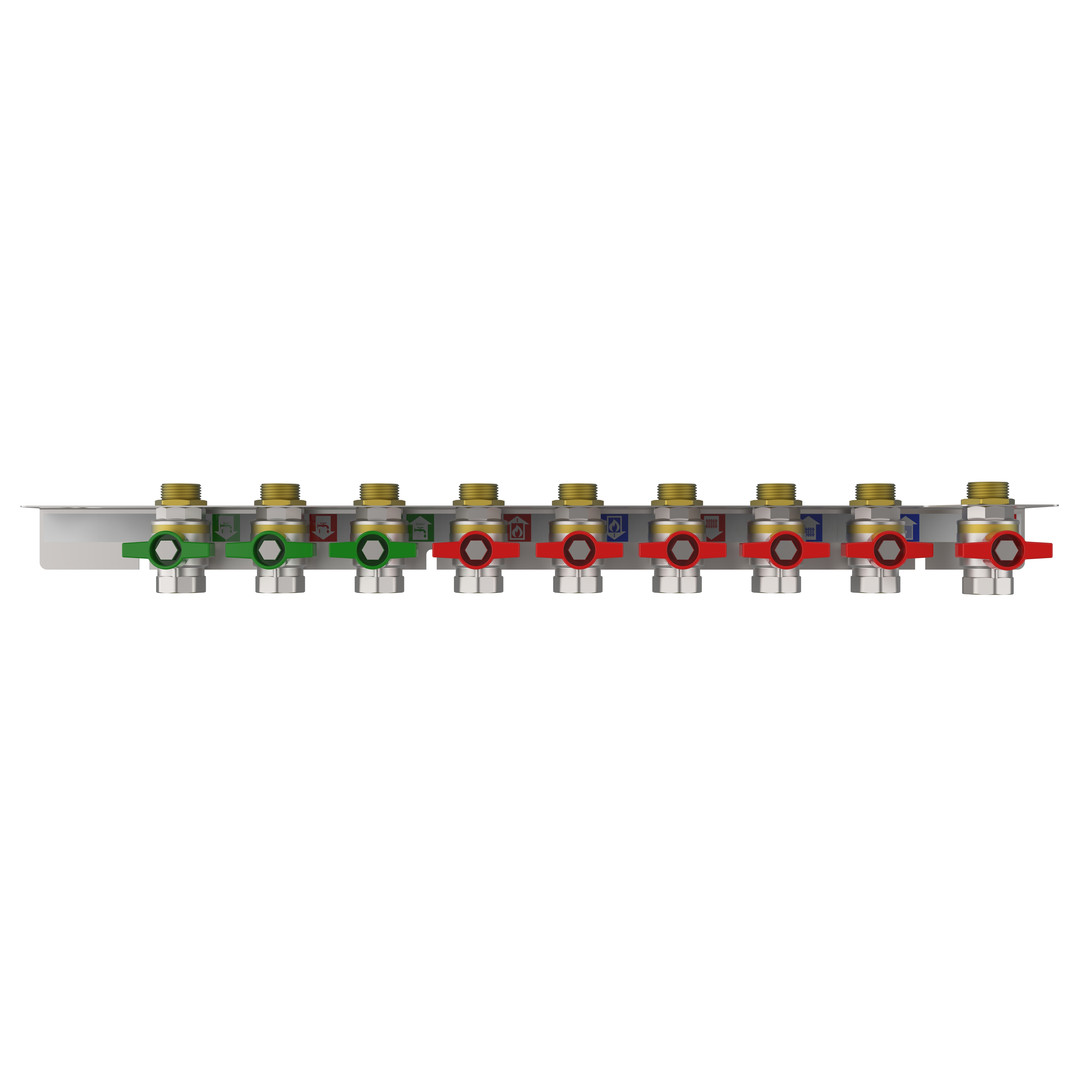 strawa Friwara WM-AS10-1-KH9-VKH Anschlussschiene für Hydraulikmodul TWE-FBR-HT, mit Kugelhahnset für externen Verteiler, 3x Trinkwasser und 6x Heizung BxHxT: 660 x 71 x 93 mm