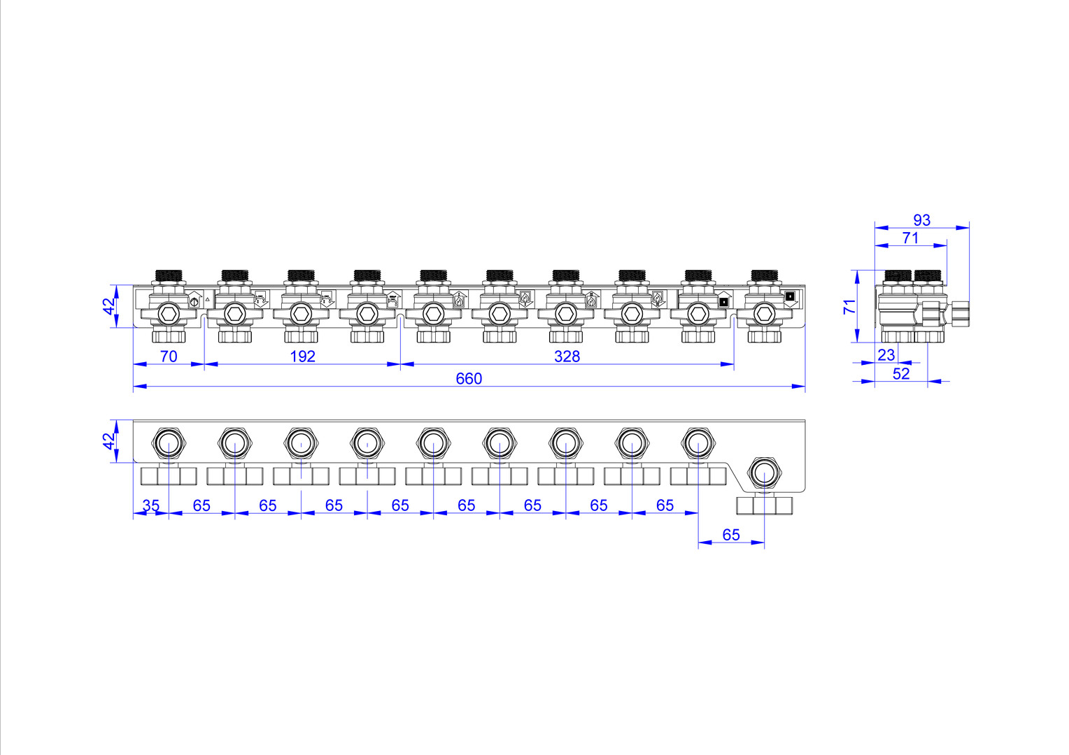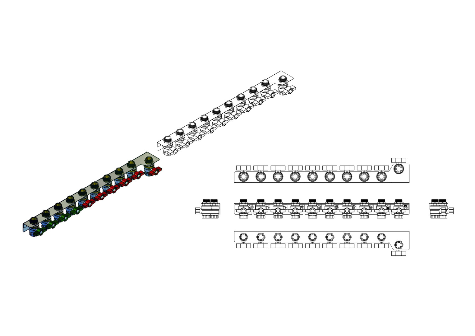 strawa Friwara WM-AS10-2-KH10-Z-VKH Anschlussschiene für Hydraulikmodul TWE-4L-Z, mit Kugelhahnset für externen Verteiler, 4x Trinkwasser und 6x Heizung BxHxT: 660 x 71 x 93 mm