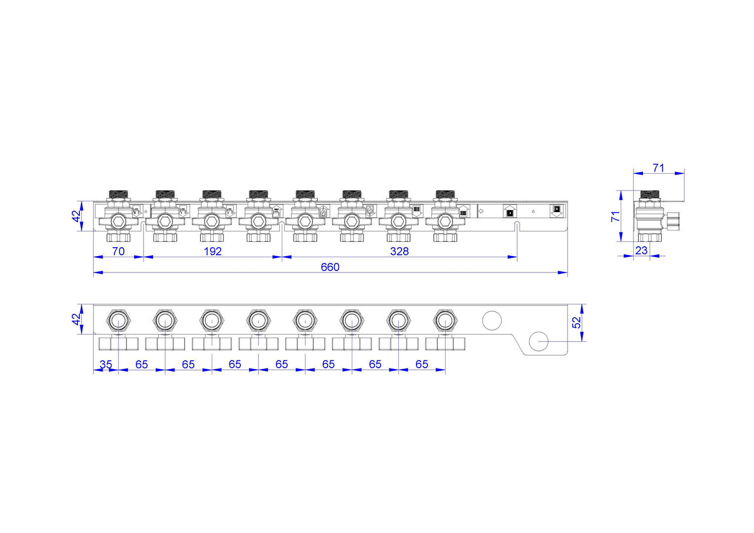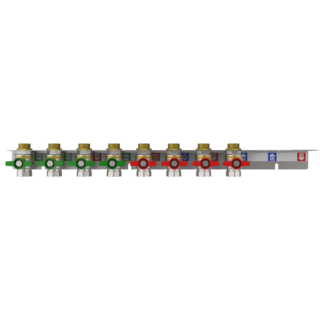 strawa Friwara WM-AS10-2-KH8-ZB-TWK Anschlussschiene für Hydraulikmodul TWE-HT und TWE-FBR-HT mit Zweitbadanschluss Trinkwasser kalt, 4x Trinkwasser und 4x Heizung BxHxT: 660 x 71 x 71 mm