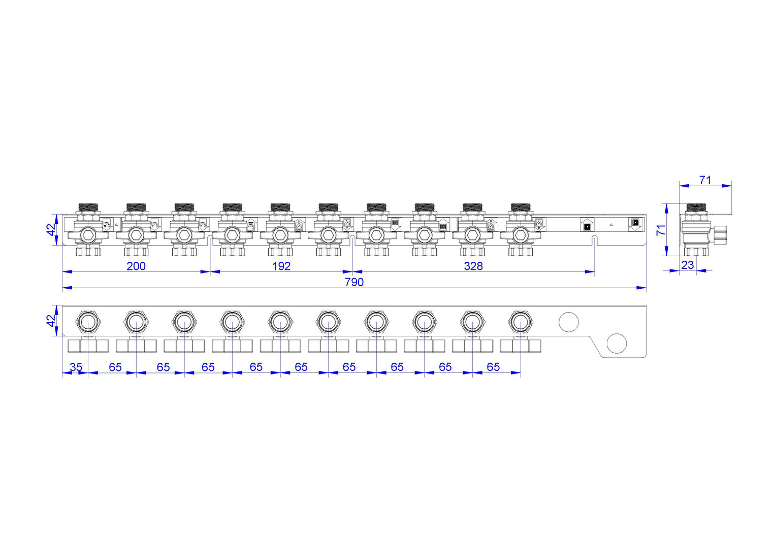 strawa Friwara WM-AS12-1-KH10-ZB-TWK Anschlussschiene für Hydraulikmodul TWE-4L-HT mit Zweitbadanschluss Trinkwasser kalt, 4x Trinkwasser und 6x Heizung BxHxT: 790 x 71 x 71 mm