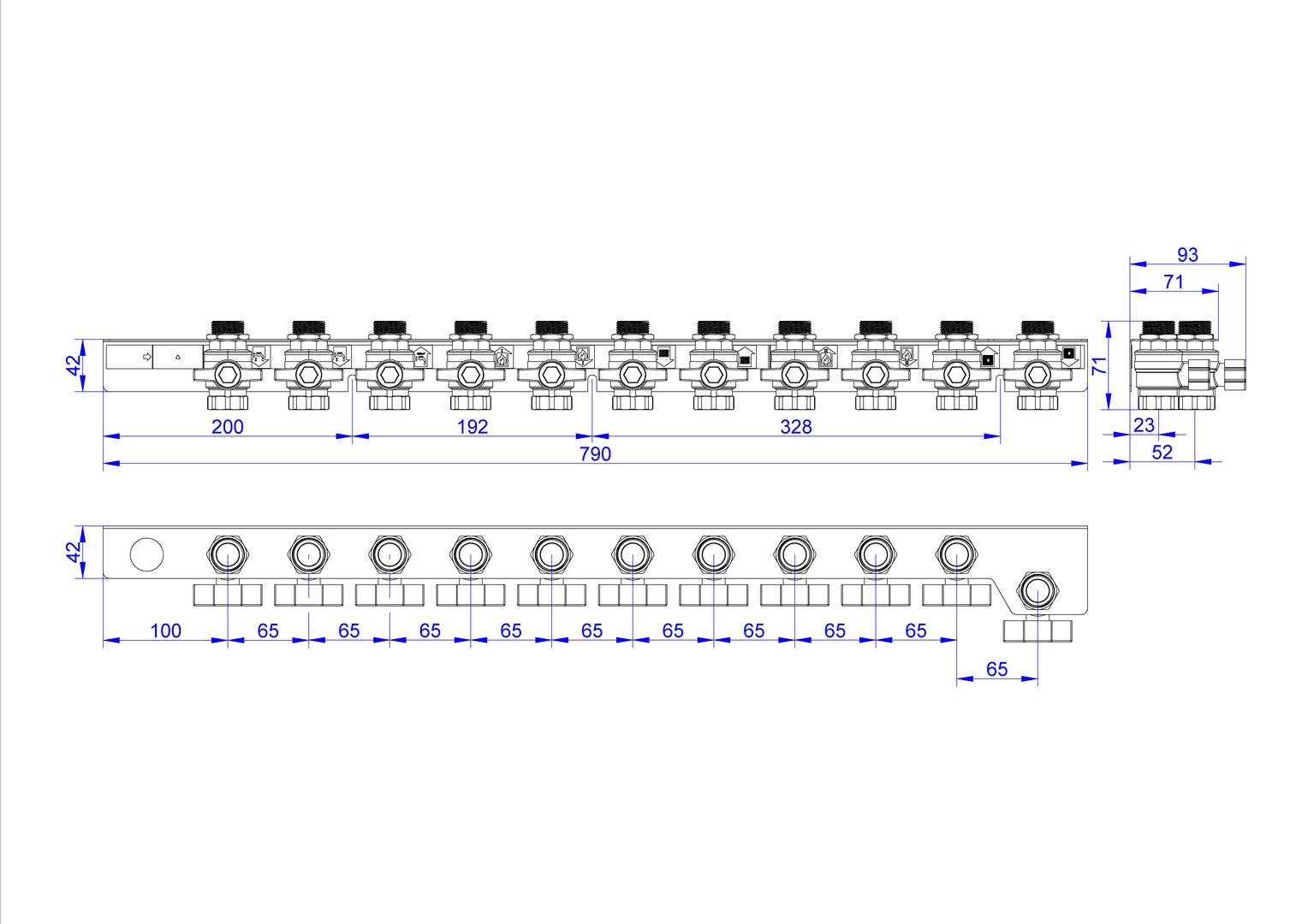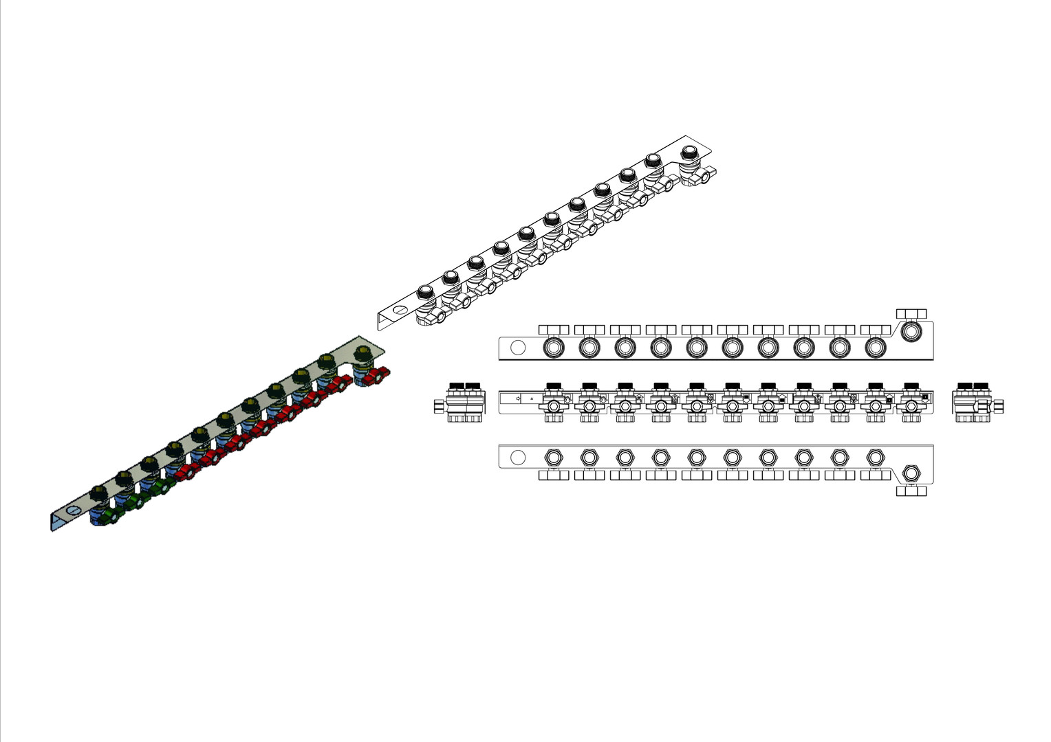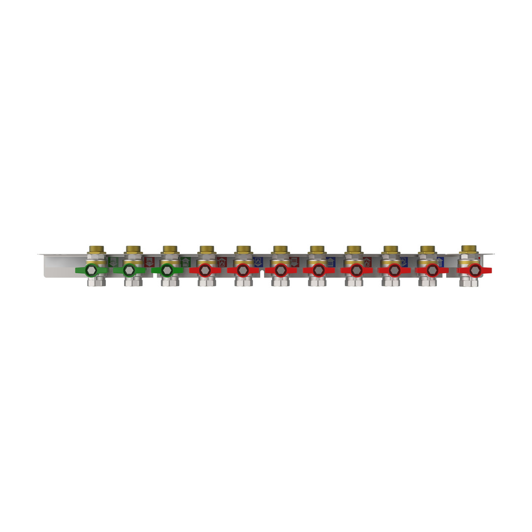 strawa Friwara WM-AS12-1-KH11-VKH Anschlussschiene für Hydraulikmodul TWE-4L-HT, mit Kugelhahnset für externen Verteiler, 3x Trinkwasser und 8x Heizung BxHxT: 790 x 71 x 93 mm