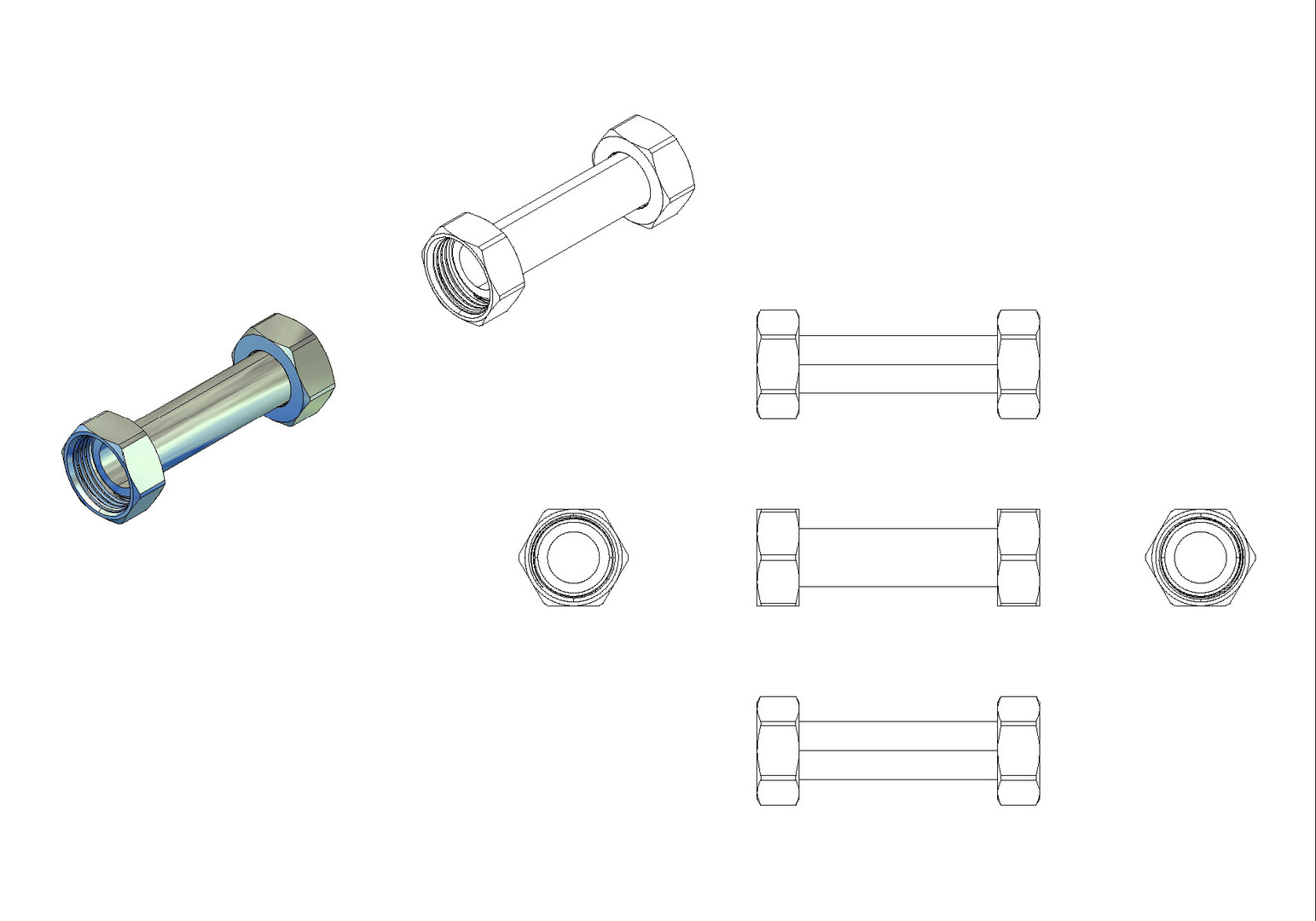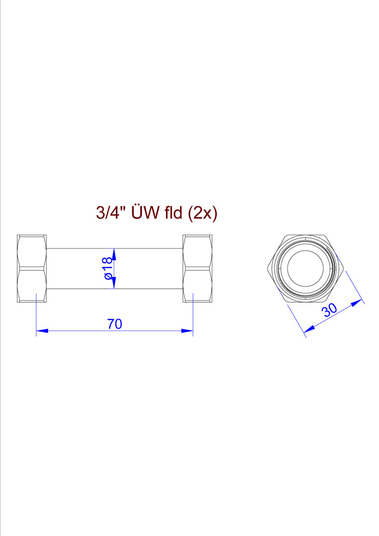 strawa Friwara WM-Rohrstück mit ¾“ ÜW-Muttern f 80 mm WZ für den Einbau von Wasserzählern mit Einbaulänge 80 mm BxHxT: 70 x 30 x 34 mm