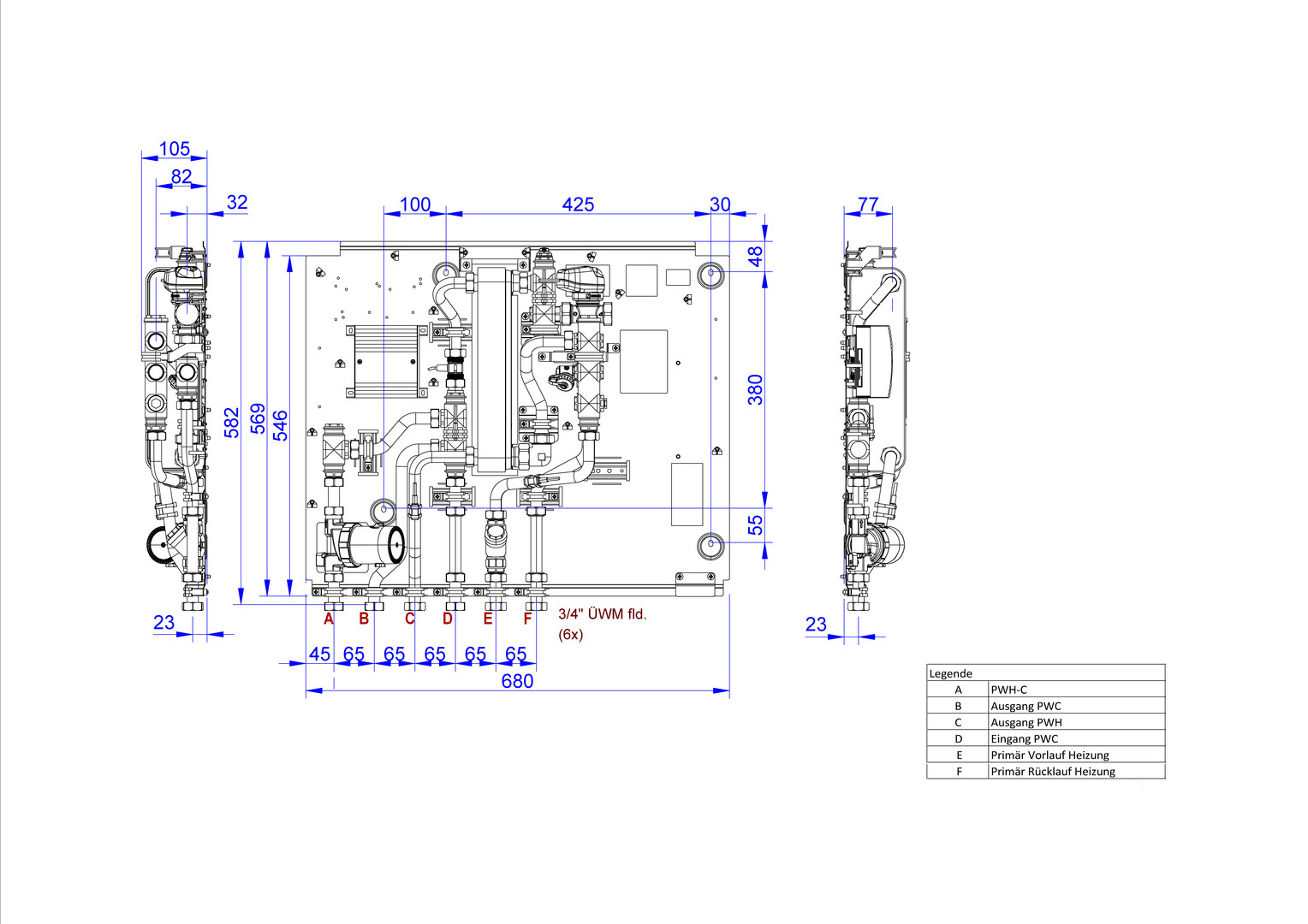 strawa Friwara WM-TWE-L1-CU-Z-D-GB1,5 für Trinkwassererwärmung, kupfergelöteter PWÜ Leistungstufe 1, Zirkulation, Dämmung, Grundblech 1,5 BxHxT: 680 x 590 x 105 mm
