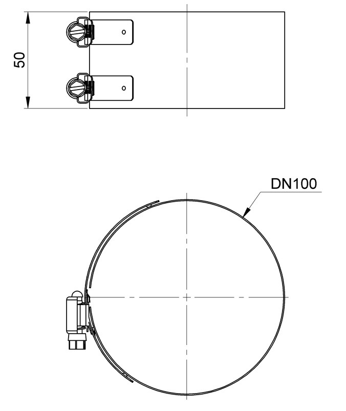 AT Klemmband DN60/100 Edelstahl RAL-Farbe