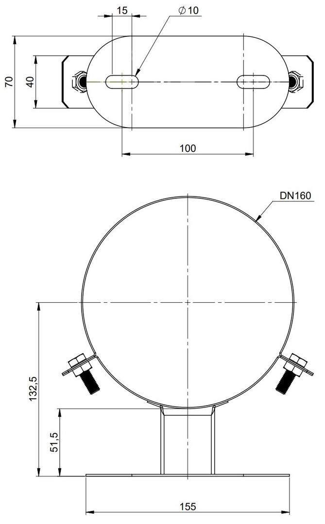AT Wandabstandhalter DN110/160, 50mm, Edelstahl verkupfert