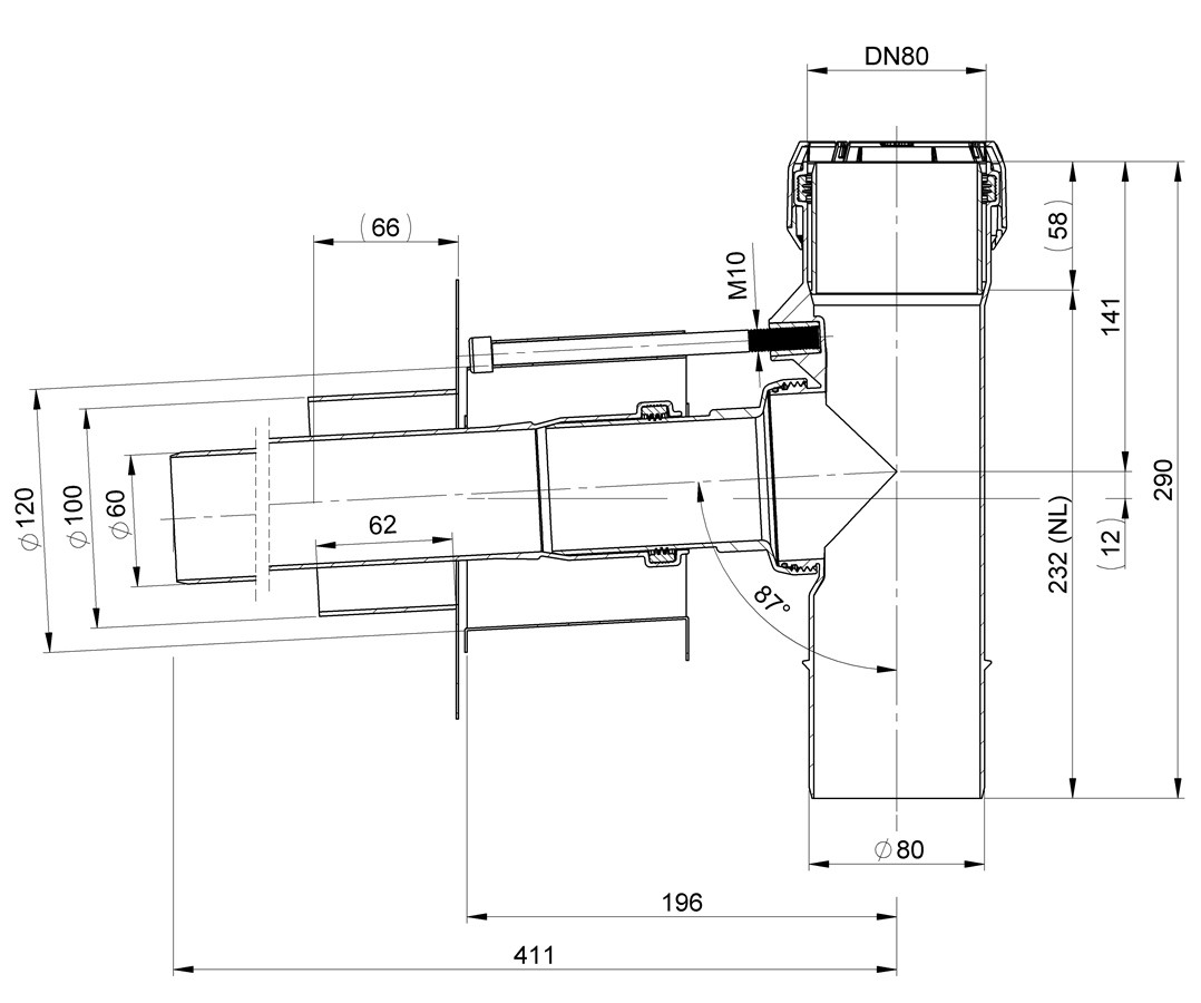 bestehend aus: Schachtblende, Wandfutter, Rohr 255 mm, Schraubdeckel für T-Stück, T-Stück mit SV-Anschluss, Flexrohrhülse, Brandschutzkleber