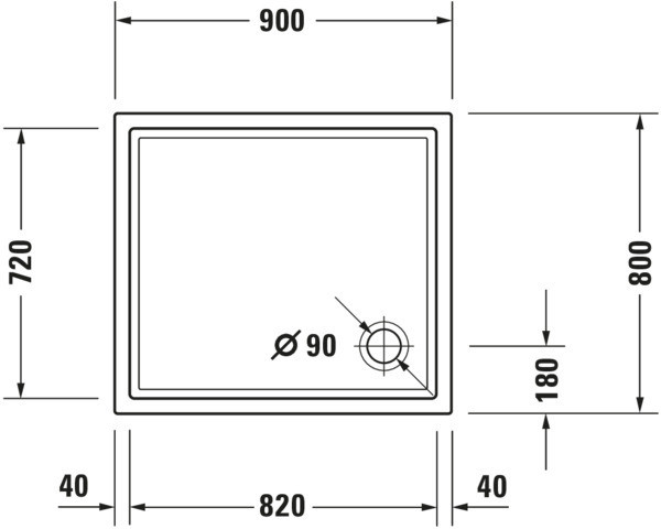 Duravit Rechteck-Duschwanne Starck Slimline 90 x 80 x 4,5 cm, weiß