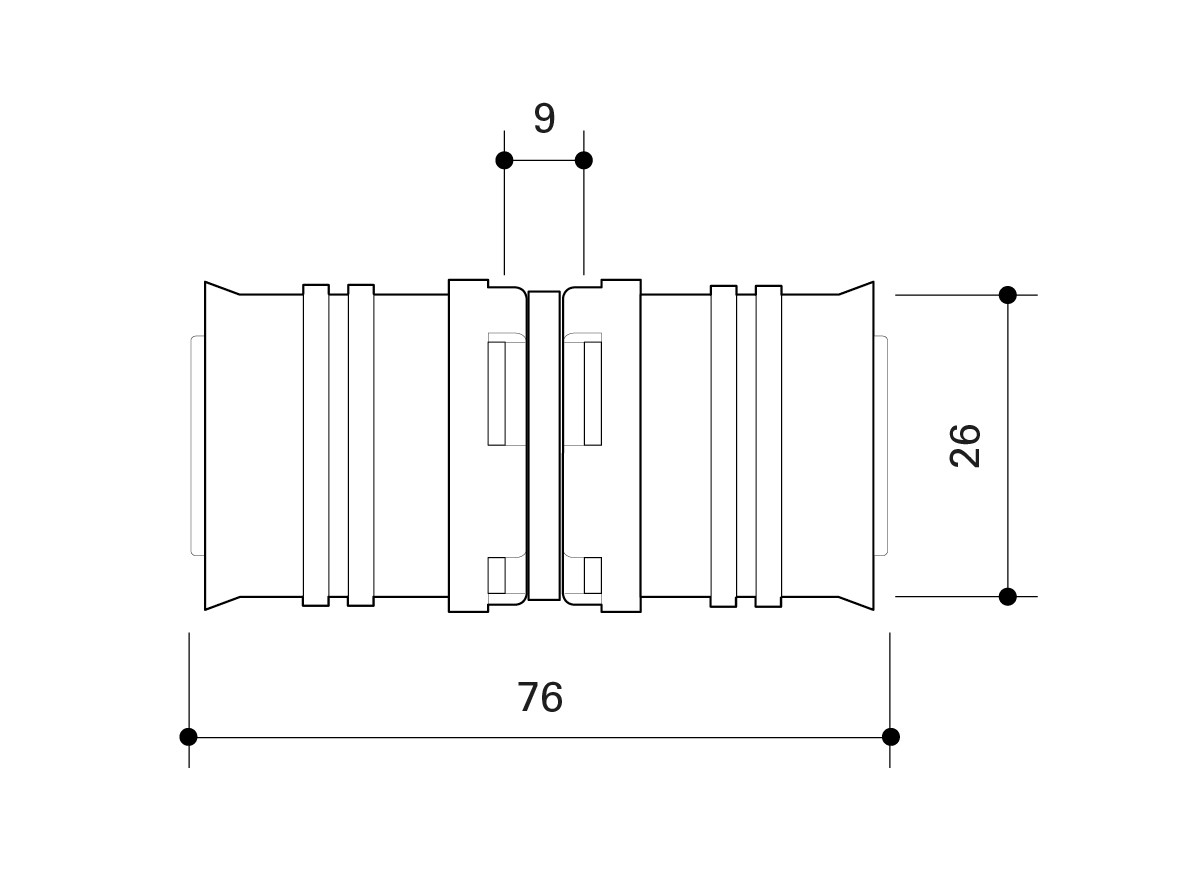 Fränkische Kupplung alpex 26 x 26 mm, PPSU