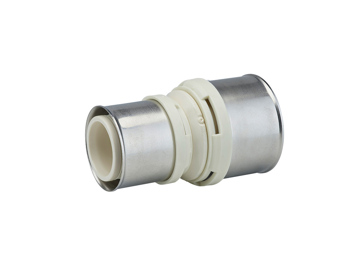 zur Installation von Trinkwasser- und Heizungssystemen mit weißen Fixierringen mit integrierten Sichtfenstern, fixierten Edelstahlpresshülsen und Leckagefunktion, verpressbar mit der F-Kontur, die Dimensionen kleiner gleich 32 mm auch mit den Presskonturen TH, U, H, VP