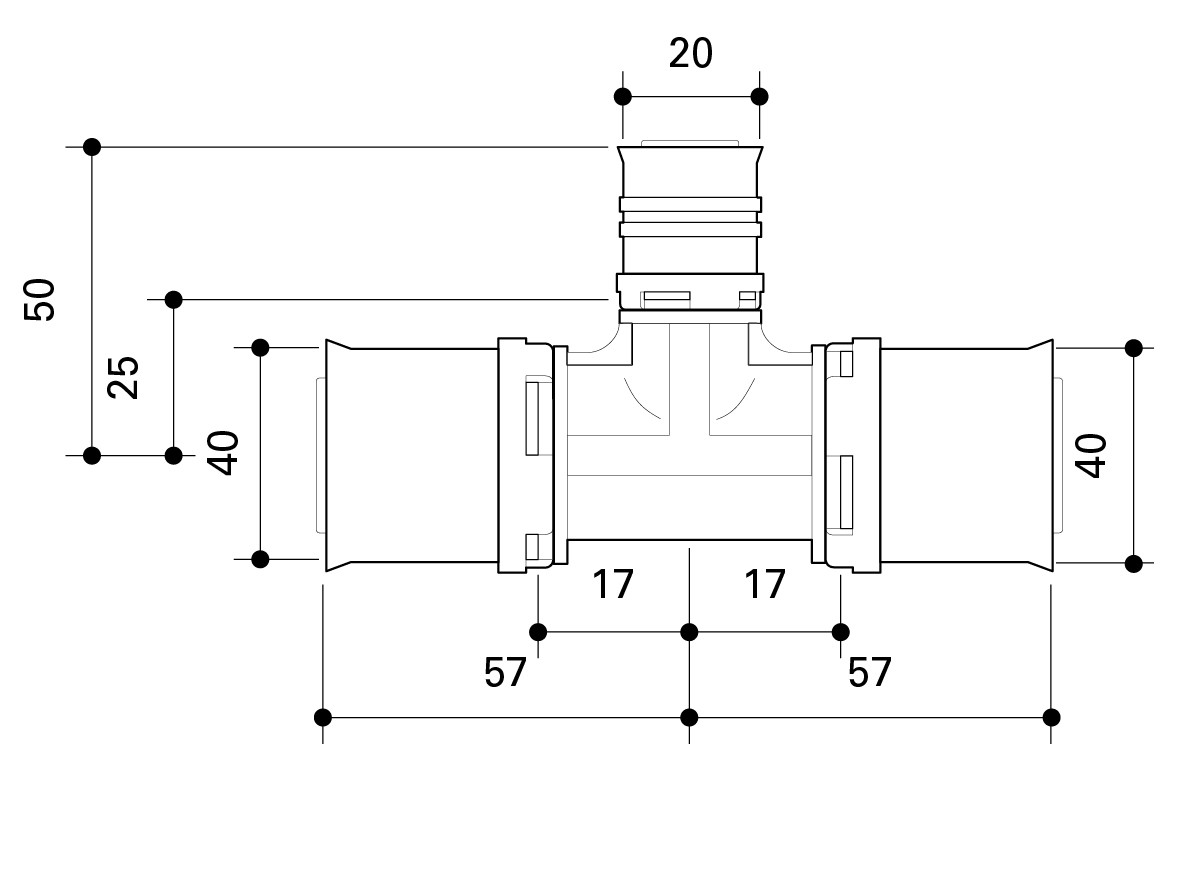 Fränkische T-Stück alpex L 40 x 20 x 40 mm, PPSU, reduziert 228437