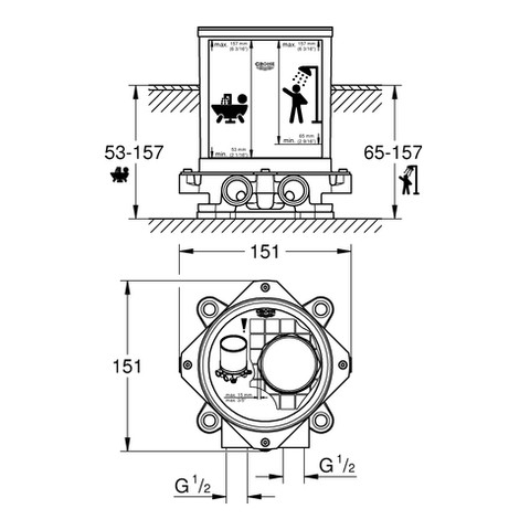 GROHE Rohbauset 1/2", für freistehende Wannen-/Brausearmatur