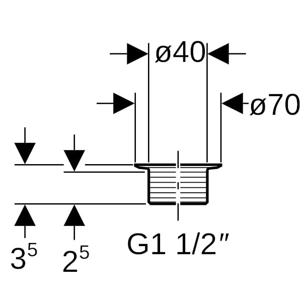 Geberit Ablaufventil mit Rundgewinde: di=40mm, H=3.5cm