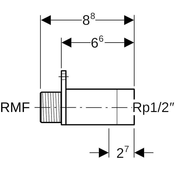 Geberit Anschluss R 1/2 x Rp 1/2, 6,6 cm, mit AG MF 1/2", gerade, Rotguss W877127
