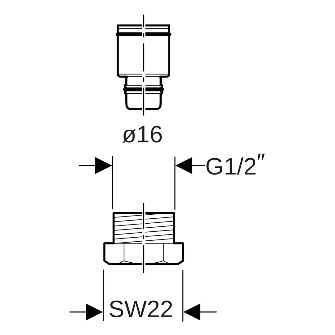 Geberit Anschlussverschraubung Ø 16 mm x G 1/2, AG, Heimeier, Messing vernickelt
