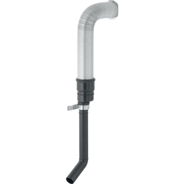 für Installationselemente-/bausteine mit vorbereitetem Anschluss für Geruchsabsaugung mit Abluft, Stutzen zum Anschließen an UP-Gehäuse des Lüfters, bestehend aus Flexrohr aus Aluminium, Anschlussstutzen, Anschlussrohr mit Bogen, Reduktion Ø 80/50 mm, Befestigungsblech und Befestigungsmaterial