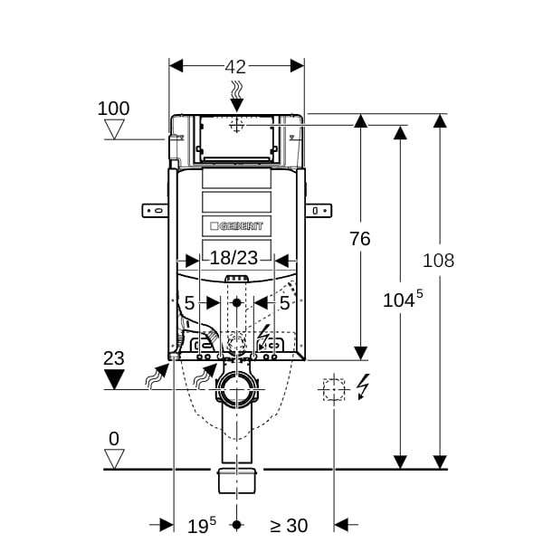 Mittenabstand WC-Befestigung 18 cm und 23 cm