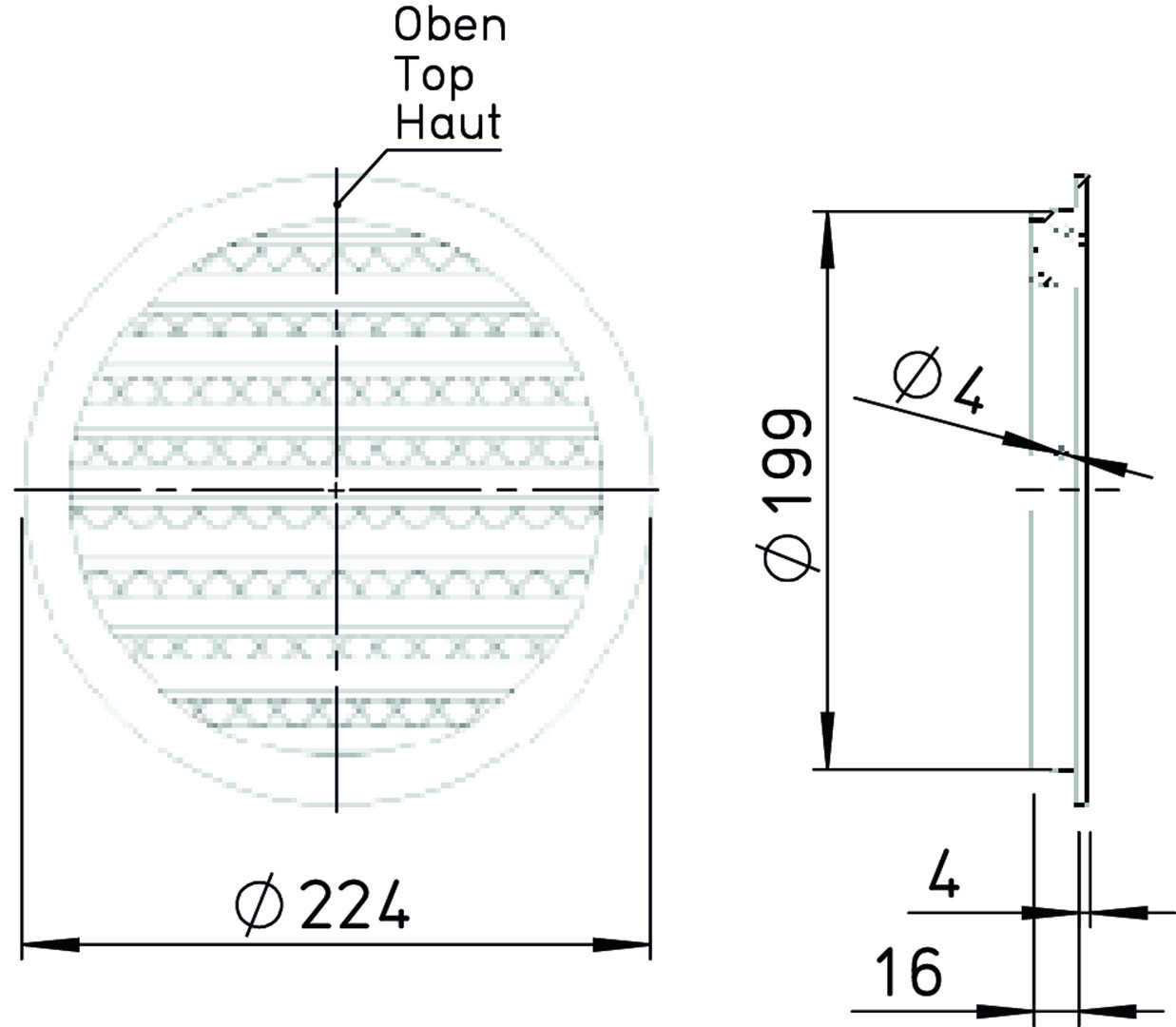 Helios FGR 200 Fassadengitter rund DN 200 aus Aluminium