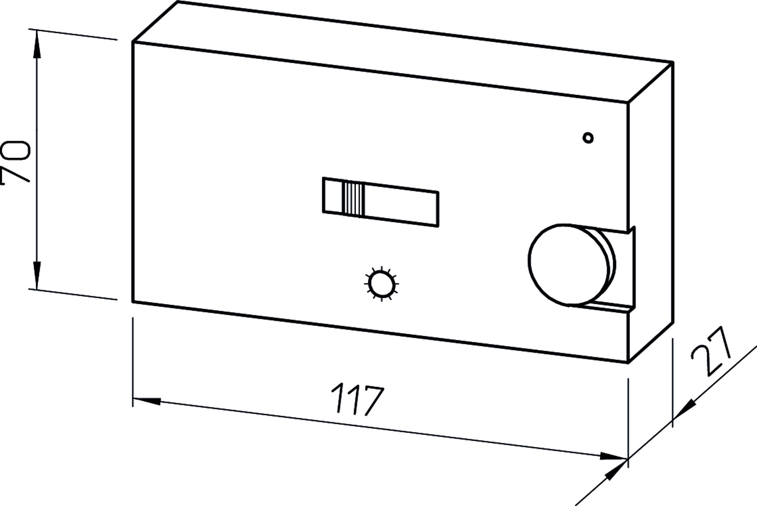 zur Steuerung von 1~ Wechselstrom-Ventilatoren bzw. 3~ Drehstrom-Ventilatoren mittels Schaltschütz, für Lüftungsanlagen in Konferenzräumen/Gaststätten/Ladengeschäften/Fertigungsstätten und Wohn-/Gesellschaftsräumen, Ein- und Ausschalten eines oder mehrerer Ventilatoren in Abhängigkeit der Raumluftgüte, integrierter Sensor, flachbauendes Gehäuse mit Luftaustausch-Schlitzen aus hellgrauem Kunststoff, 230 V, 1~, 50/60 Hz, Nachlaufzeit 1-10 min., Einschaltverzögerung ca. 5 s, Belastbarkeit 2 A (ind.), IP 30, 125 x 75 x 30 mm