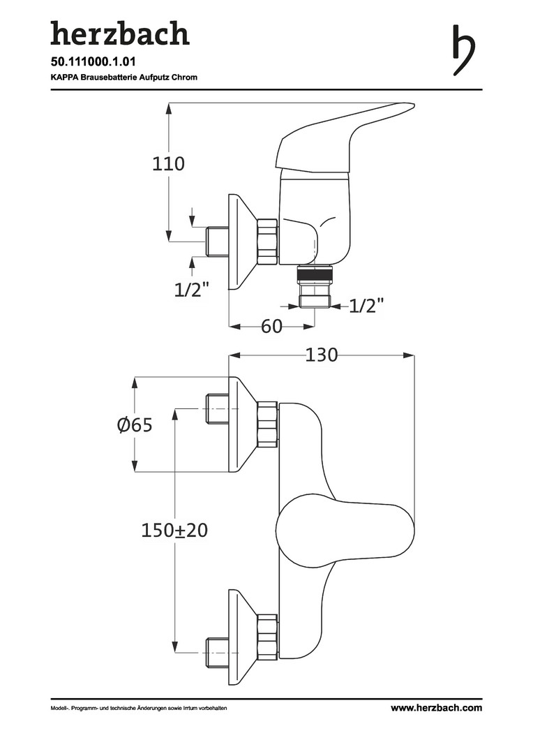 Herzbach Brause-Einhebelmischer Kappa 1/2", chrom