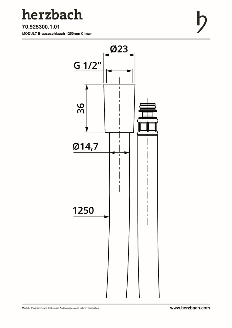 Herzbach Brauseschlauch MODUL7 125cm, Anschlussgewinde 1/2", chrom