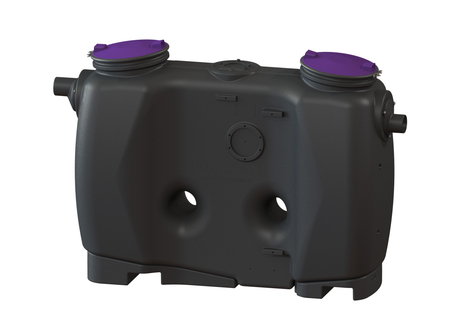 mit Direktentsorgung nach DIN EN 1825 und DIN 4040-100, aus Kunststoff, zur freien Aufstellung in frostgeschützten Räumen, Ausführung in Fließrichtung rechts, kann durch Austauschen des Zu-/Ablaufstutzens in Fließrichtung links geändert werden, Zulassungsnummer Z-54.1-474, Anlage komplett montiert