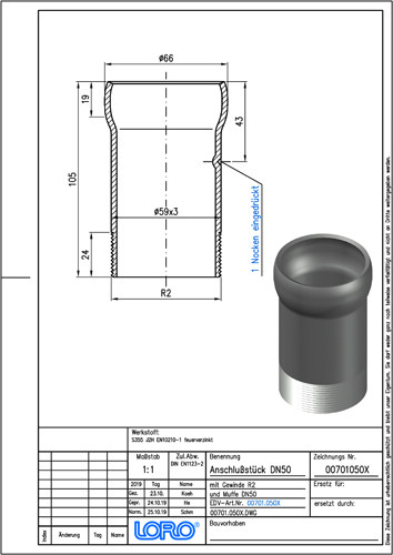 LORO X Anschlussstück DN 50, 2" AG und Muffe 2"