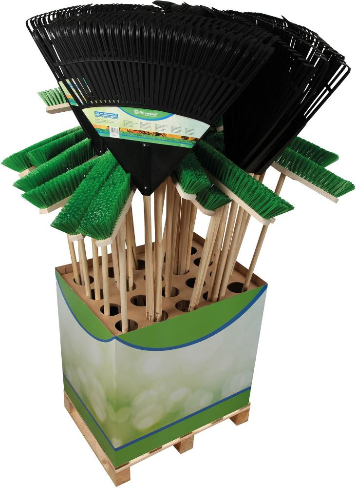 Lieferung: 40 Stück im Display (20 x Laub- und Rasenbesen XL Classic, 20 x Garten- und Straßenbesen Classic).