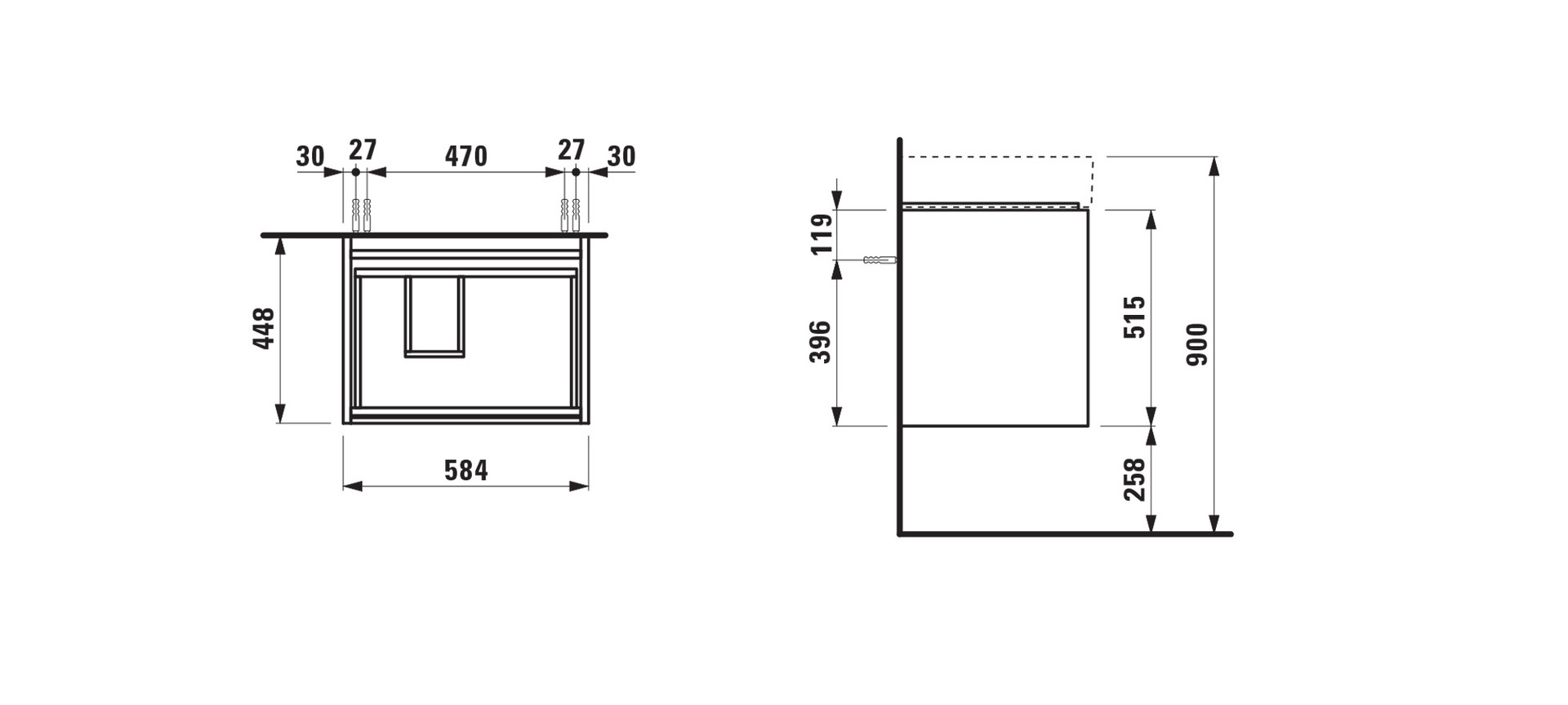 Laufen Waschtisch-Unterbau LANI 58,4x51,5x45cm, 2 Schubladen, Specialcolor W492794