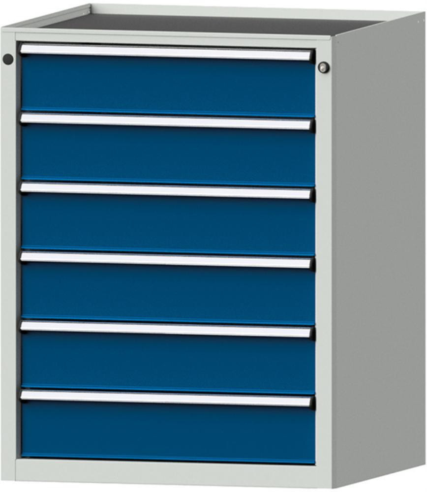 • Oberfläche: Gehäuse RAL 7035 lichtgrau/Schubladenfronten RAL 5010 enzianblau